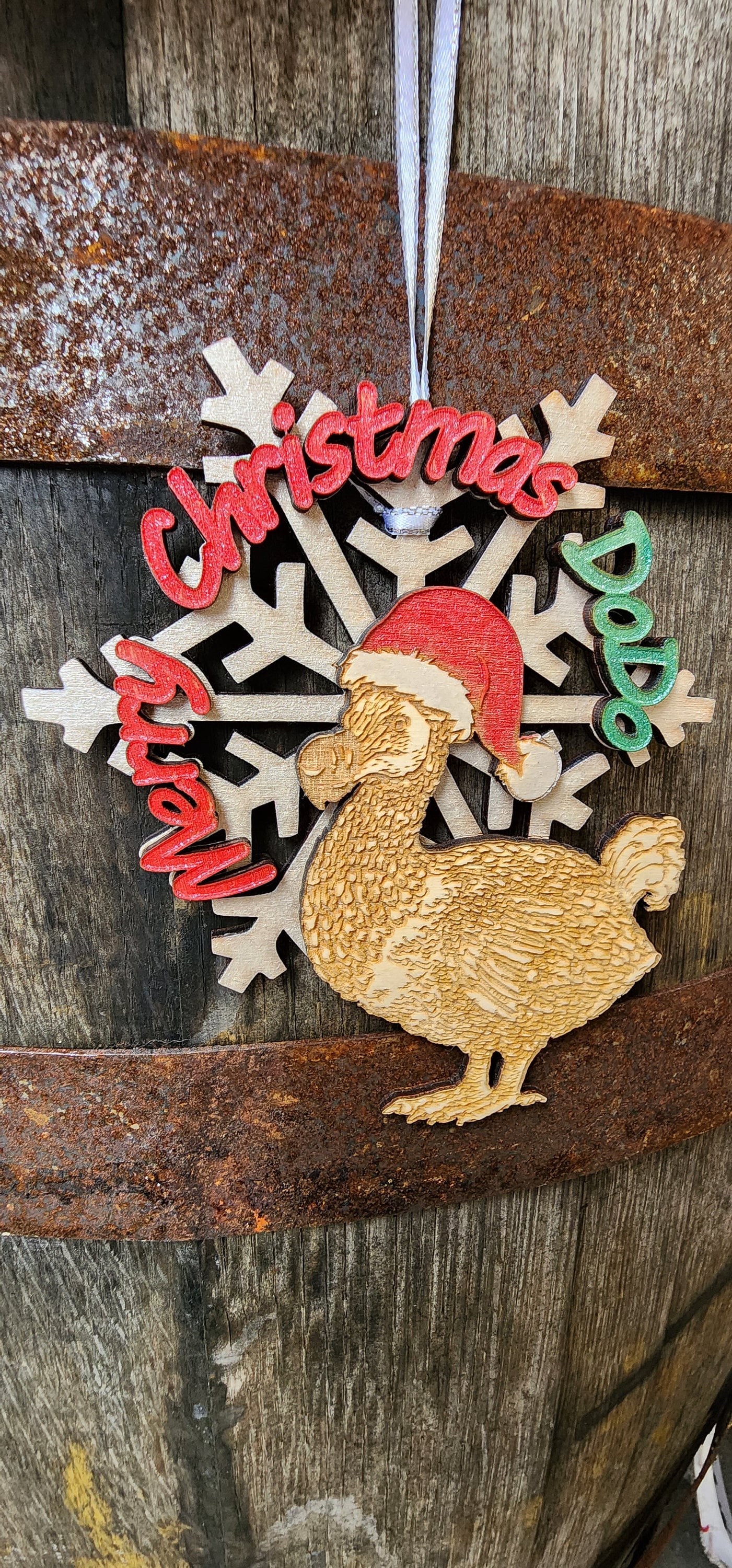 This eagerly crafted ornament, cut from birch wood and painted by hand, adds a unique touch to any holiday display. Its whimsical design, inspired by seasonal cheer and the family rooster, will charm any admirer, and its removable ribbon hanger allows for easy display. Celebrate this season in style with the perfect rooster-inspired addition.