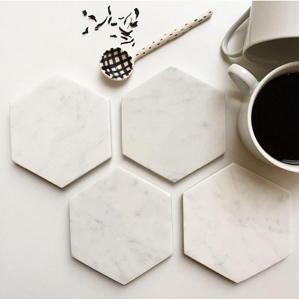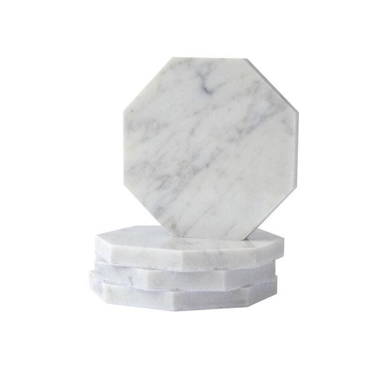 Perfect for any home or office setting. The natural white marble creates a sophisticated and elegant look that will impress any guest or client. The octagonal shape adds a unique touch to the classic coaster design, making it a standout piece on any tabletop. These coasters can be personalized with a custom-engraved logo or message, making them a perfect promotional item for corporate events, weddings, or gifts. Add a touch of luxury to your marketing efforts or for yourself with these stunning engraved octagonal white marble coasters.